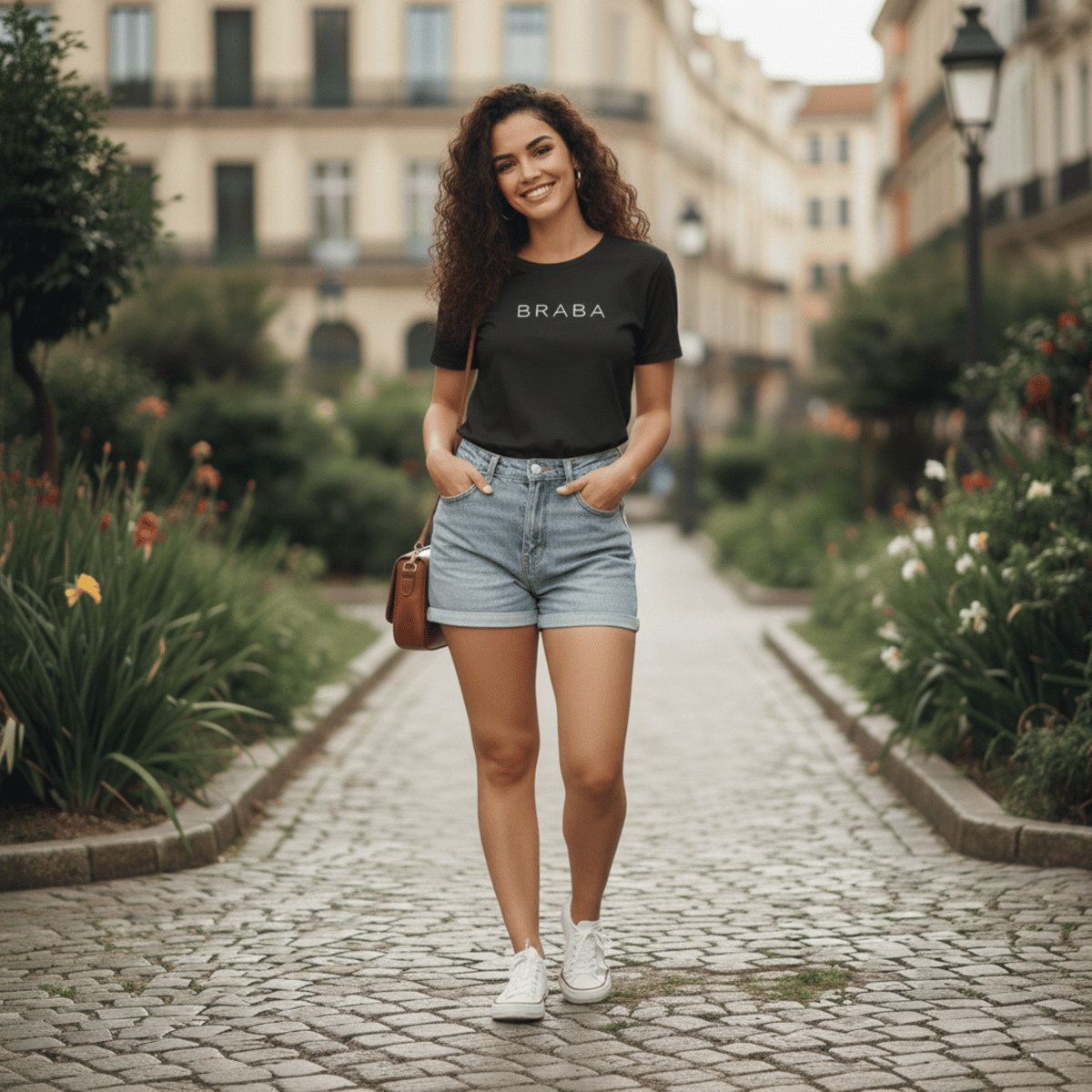 Confeccionada em tecido premium de alta qualidade, a camisa oferece toque macio, excelente respirabilidade e caimento perfeito, valorizando o corpo com conforto e estilo. A estampa com a frase “BRABA” se destaca de forma marcante, representando coragem, independência e presença.